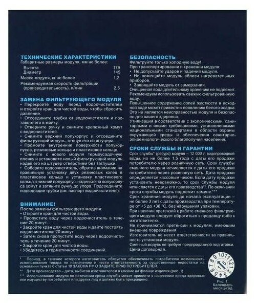 | Ресурс стандартного фильтрующего модуля | 12000 л |