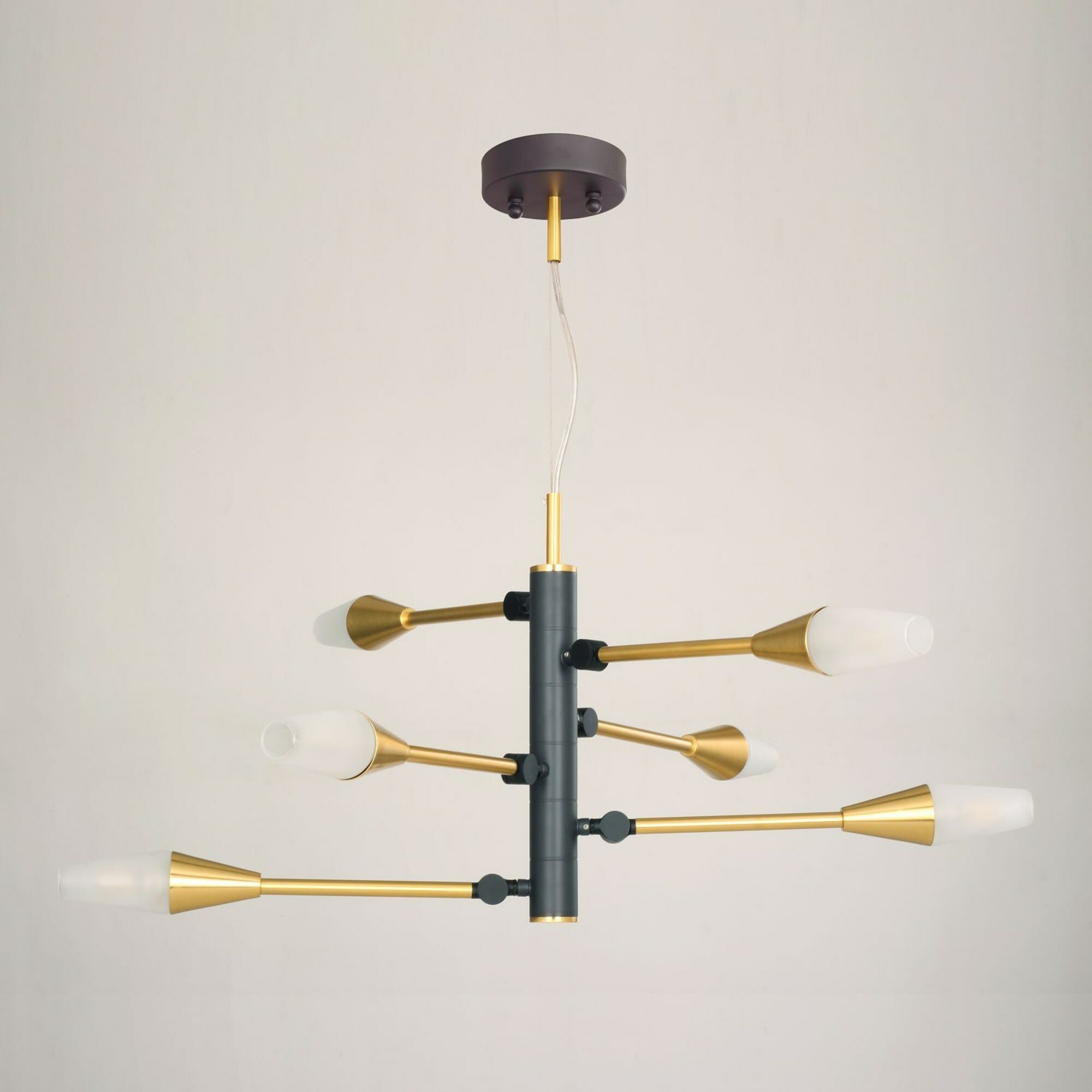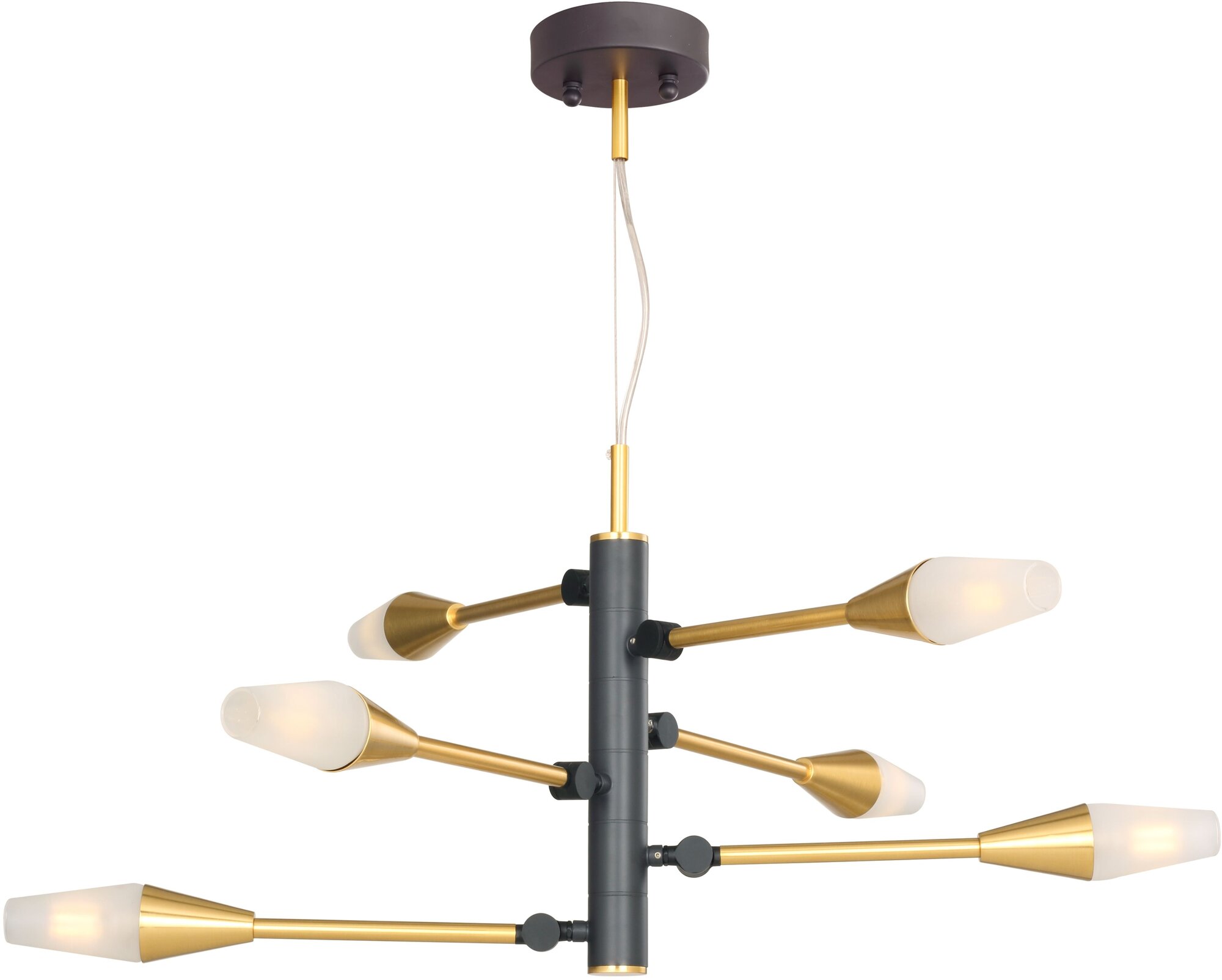 Цвет арматуры подвесной люстры - черный, латунь.