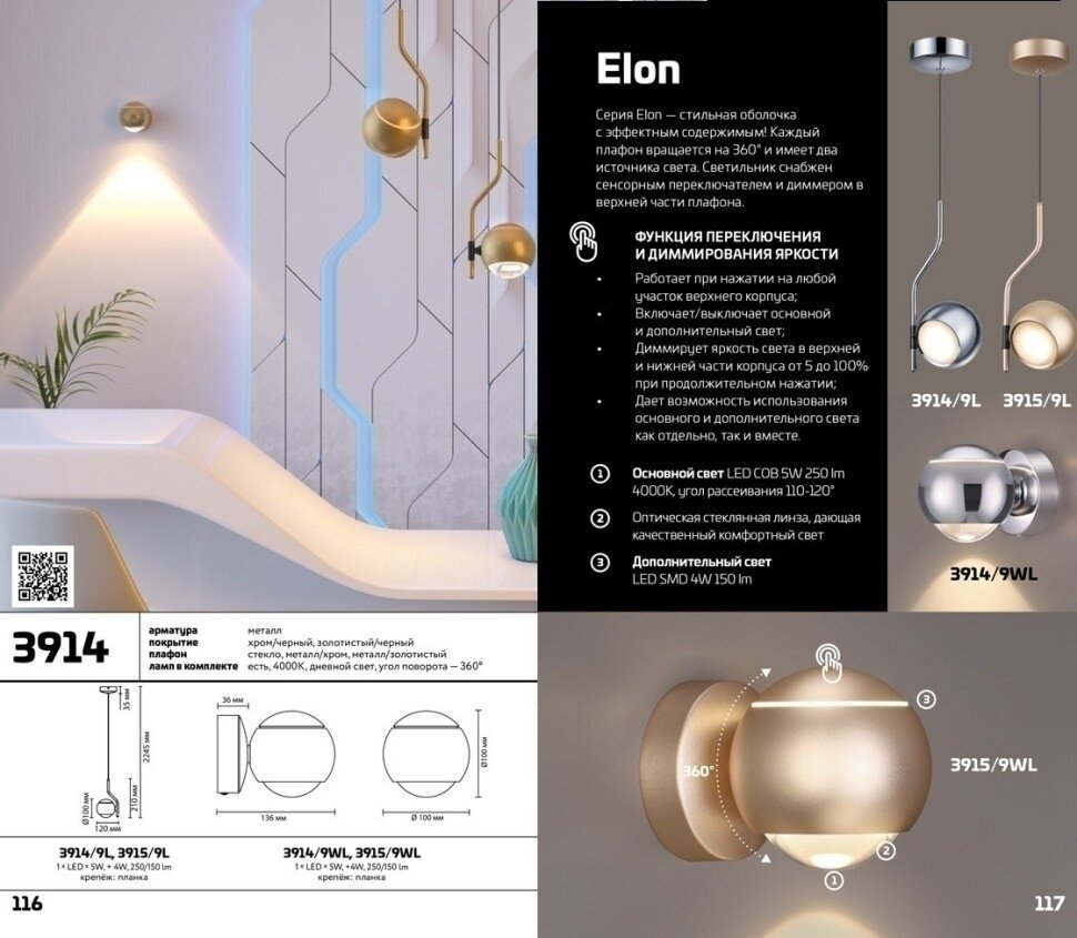 | Дополнительные характеристики | плафон каждого светильника может поворачиваться на 360 град.; светильник снабжен сенсорным переключателем и диммером в верхней части плафона, который- работает при нажатии на любой участок верхнего корпуса - включает/выключает основной (в нижней части корпуса) и дополнительный свет (в верхней части)- диммирует яркость света в верхней и нижней части корпуса от 5% до 100% при продолжительном нажатии.- дает возможность использования основного и дополнительного света как отдельно, так и вместе |