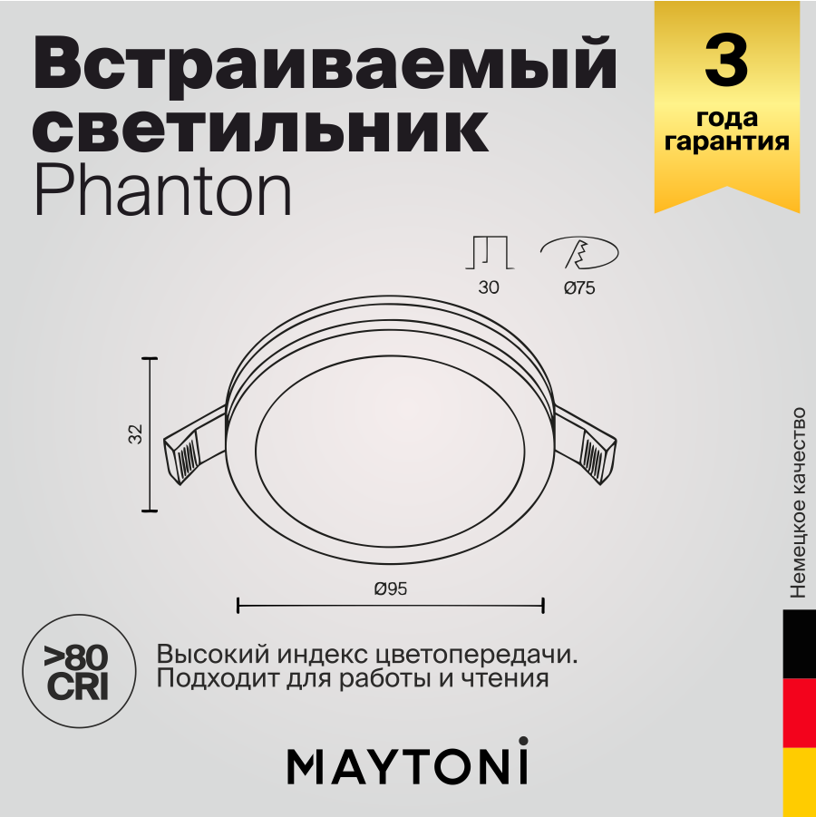 Встраиваемый светодиодный светильник - продукт известной компании Maytoni (Германия). Имеет максимальную мощность 12 Вт, освещает площадь до 2 кв. м. Отлично подойдет для таких мест, как гостиная, прихожая и коридор, кафе, кабинет, кухня, офис, магазин. Впишется в интерьеры следующих стилей: техно.