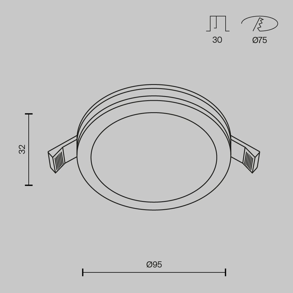 - Диаметр монтажного отверстия: 75 мм.