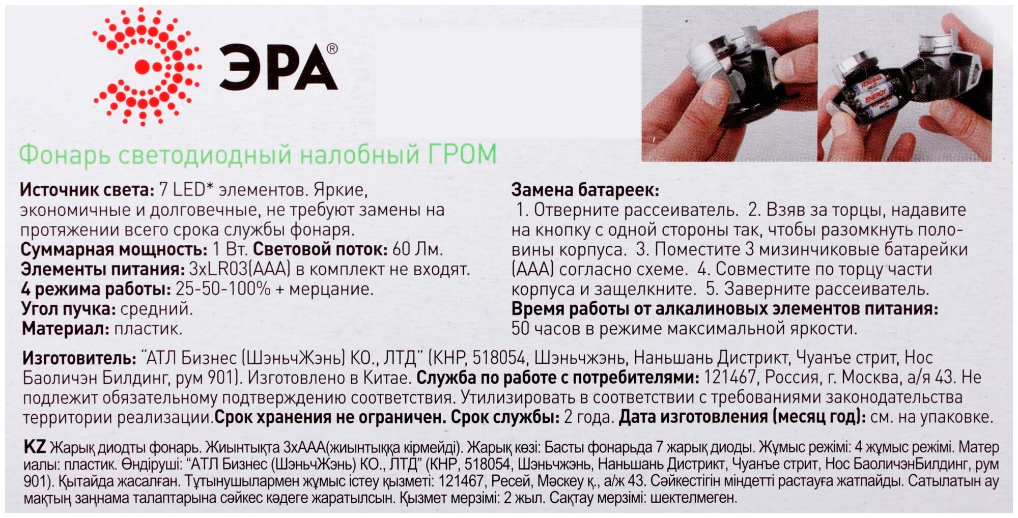 Сервис сравнения цен СкидкаГИД предлагает сравнить цены на товар «Налобный светодиодный фонарь ЭРА от батареек 60 лм (GB-602)»