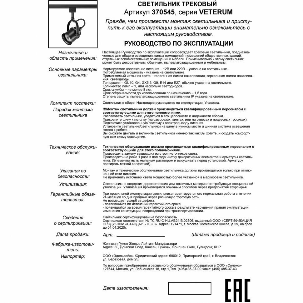 Сервис сравнения цен СкидкаГИД предлагает сравнить цены на товар «Трековый светильник Novotech Veterum Veterum 370545»