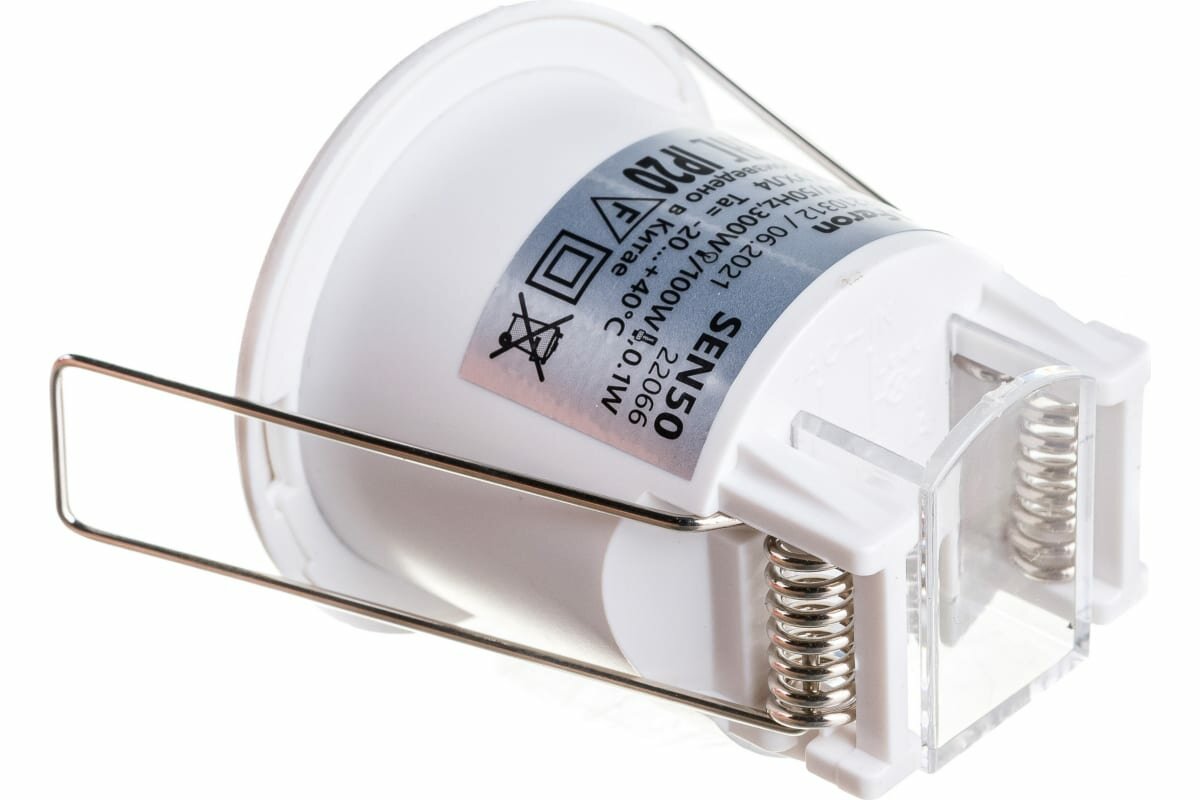 Датчик движения SEN50 предназначен для использования внутри помещений, монтируется в потолок и автоматически включает освещение при появлении человека в зоне действия. Датчик конструктивно приспособлен к натяжным или навесным потолкам, обладает широким углом обнаружения 360° и большим диапазоном высоты установки. Имеется возможность регулировать освещенность и время задержки.