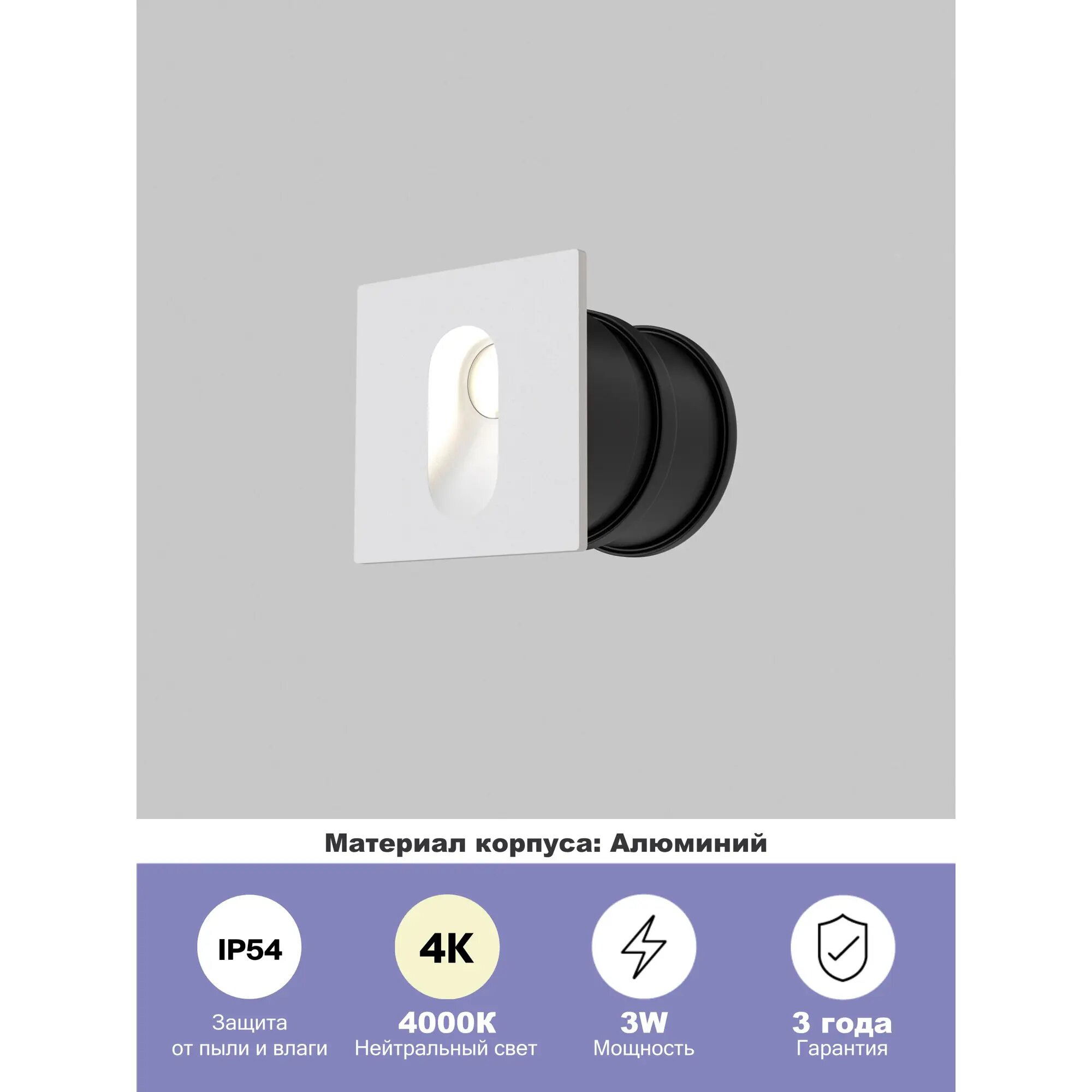- Встраиваемый квадратный белый светильник для лестницы Maytoni Via Urbana O022-L3W