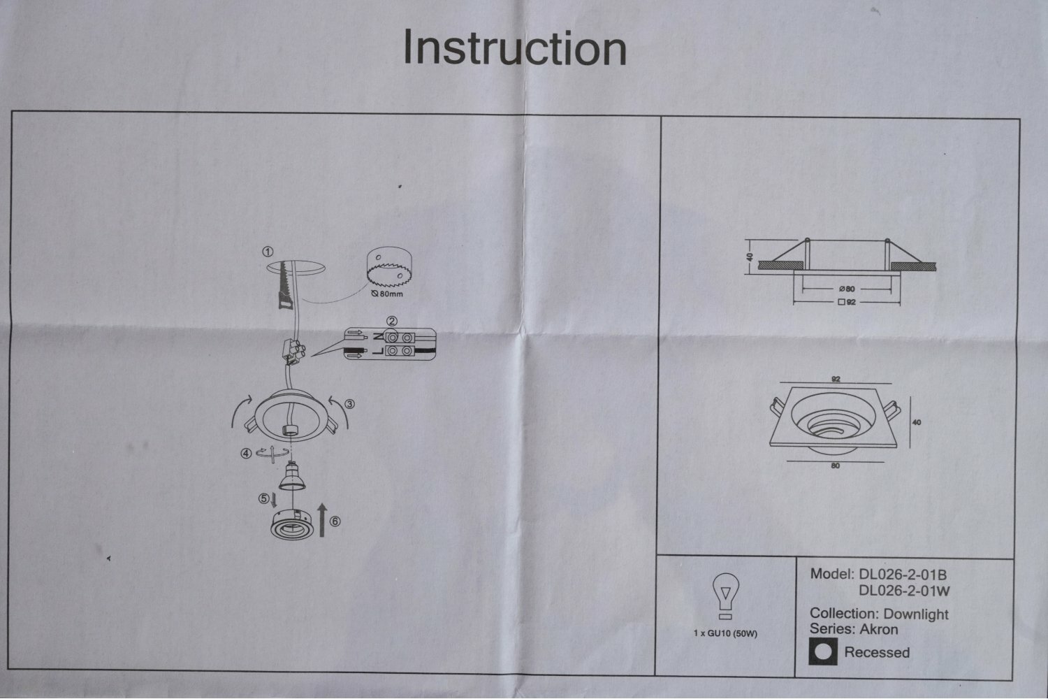- Диаметр монтажного отверстия: 80 мм.