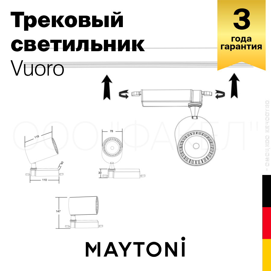 - Светильники MAYTONI 25335, 20355, 20448 (MAYTONI Track TR003-1-30W3K-B, TR007-1-18W3K-W) обзор