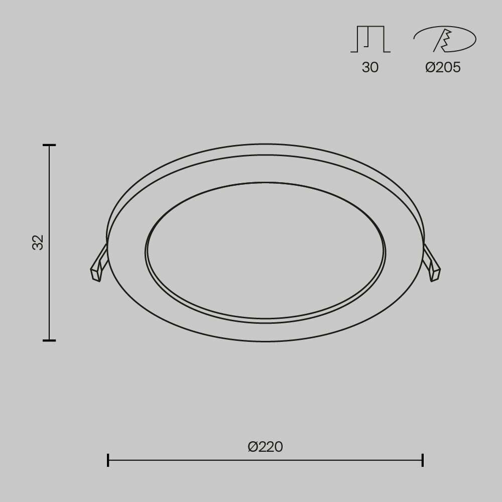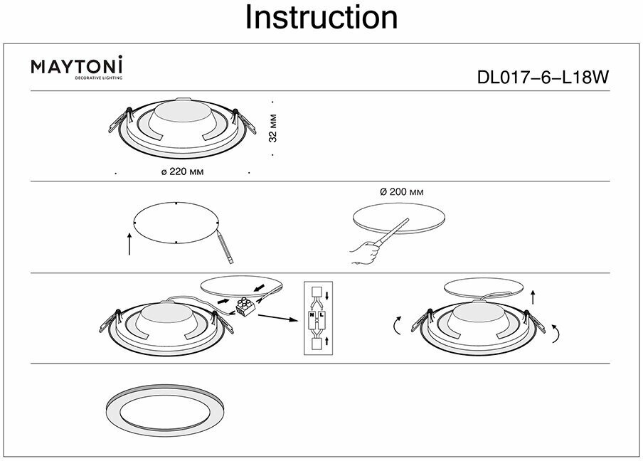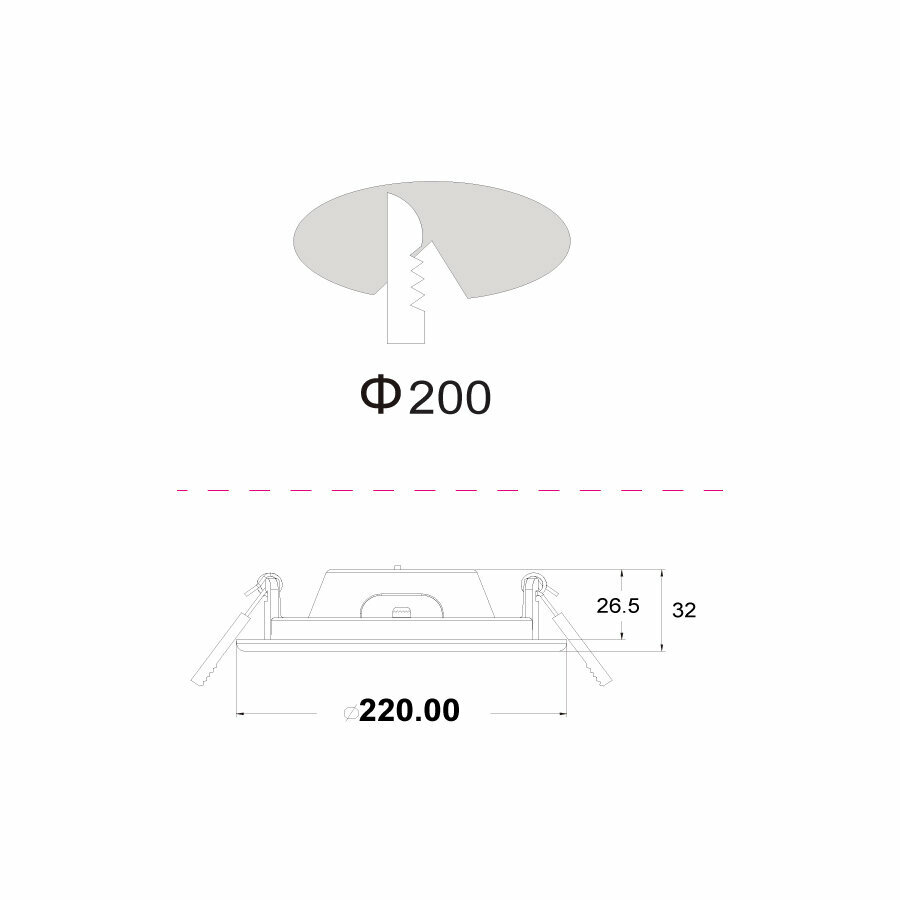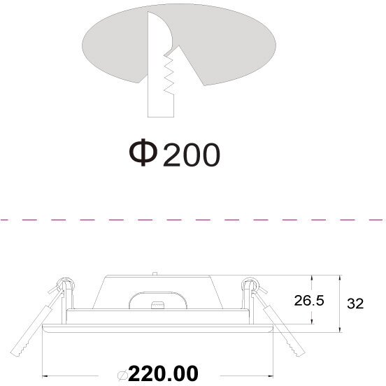 - Диаметр монтажного отверстия: 200 мм.