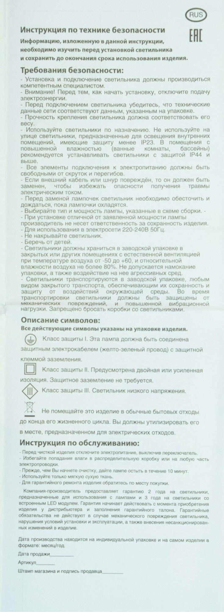 - Класс защиты: 2.