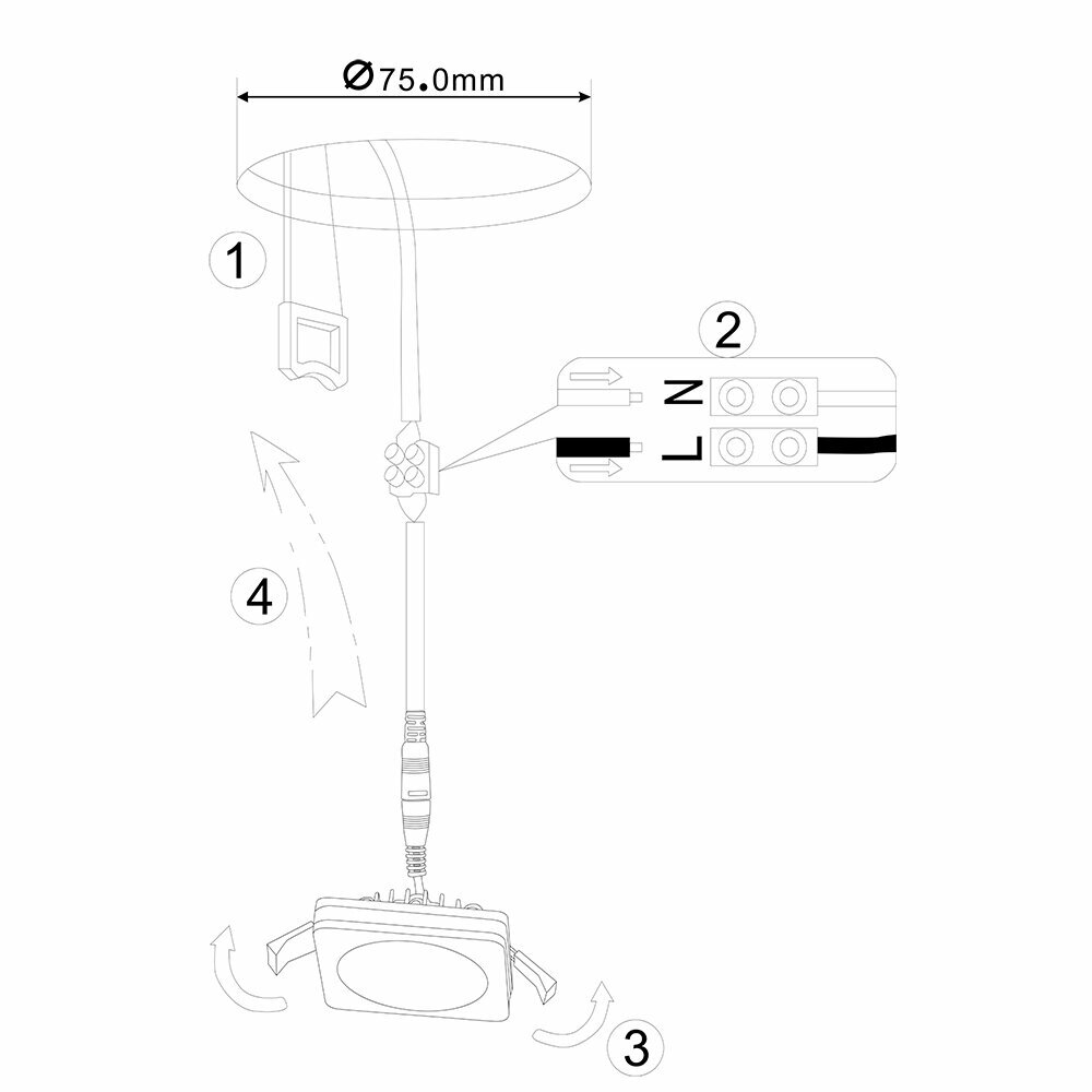 - Диаметр монтажного отверстия: 75 мм.