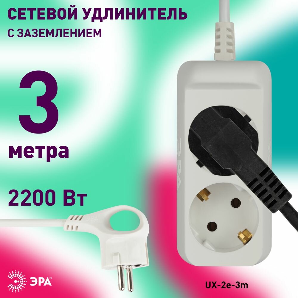 Удлинитель ЭРА UX-2e-3m