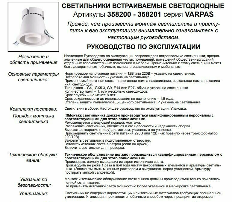 | Назначение | Встраиваемый светильник |