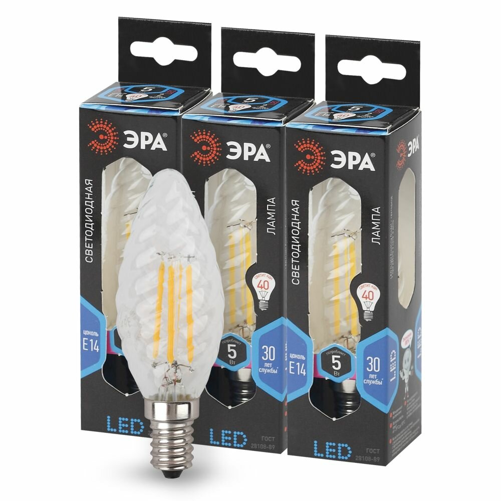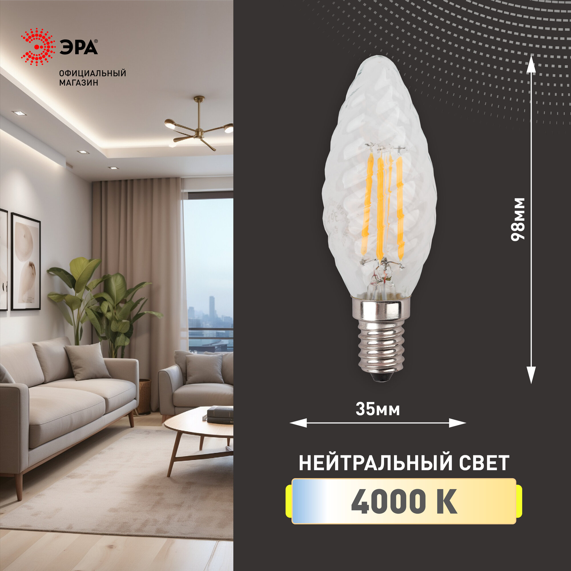 ЭРА Б0027936 Лампочка светодиодная F-LED BTW-5W-840-E14 Е14 / Е14 5Вт филамент свеча витая нейтральный белый свет