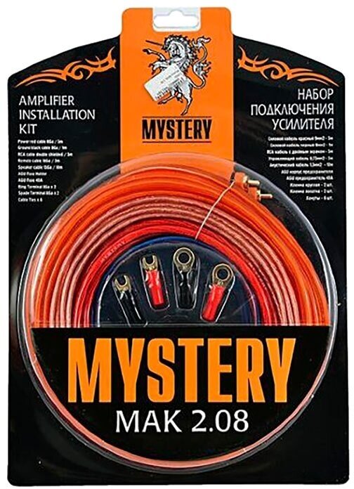 Набор Mystery MAK 2.08 предназначен для подключения двухканального усилителя и подходит для бортовой сети автомобилей с напряжением 12 В.