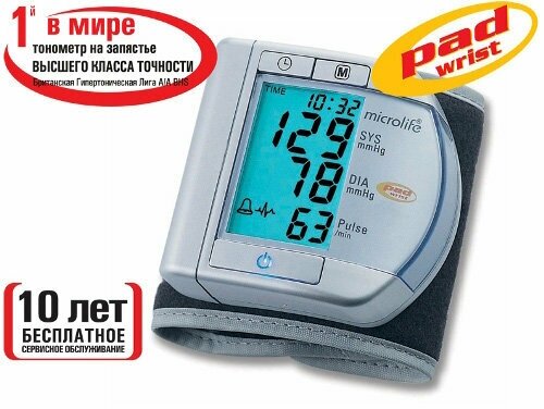 Тонометр на запястье Microlife BP W100 PAD полностью автоматический и подходит для людей любых возрастных групп и с любым уровнем давления, что подтвердили исследования сразу по двум протоколам - ESH и BHS. Как и все тонометры такого типа, он предельно компактен, благодаря чему удобен в поездках и для спортсменов. Он имеет высший класс точности (A/A) и Британского Гипертонического общества, это единственны запястный тонометр в мире способный похвастаться такой точностью.