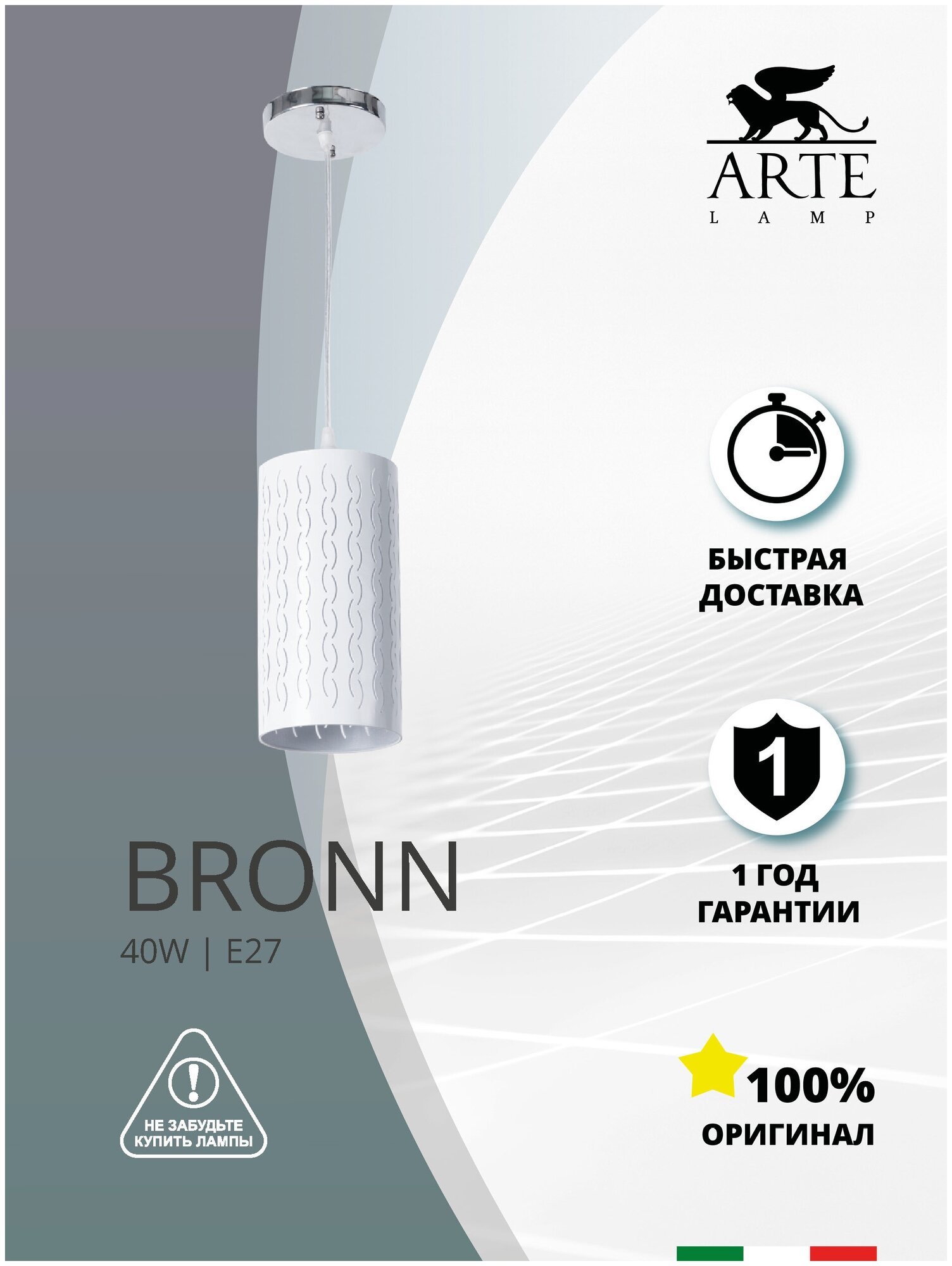 Подвесной светильник Bronn - продукт известной компании Artelamp (Италия). Имеет максимальную мощность 40 Вт, освещает площадь до 2 кв. м. Отлично подойдет для таких мест, как гостиная, кафе, кухня, над кухонным островом, офис. Впишется в интерьеры следующих стилей: модерн.