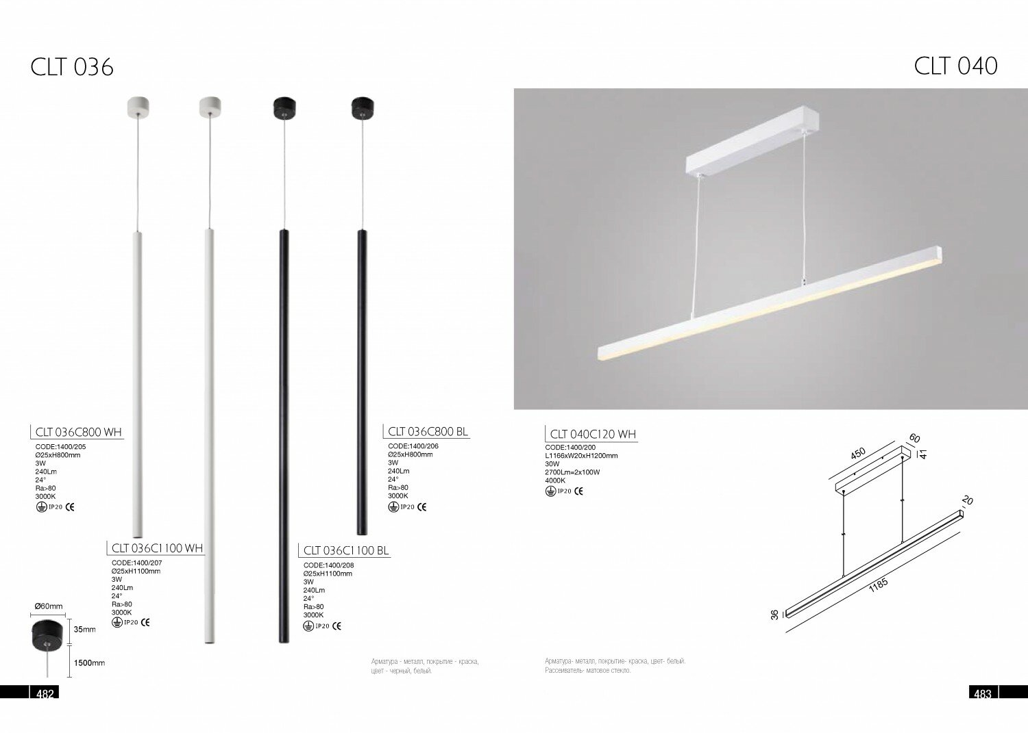 | Направление плафонов | Вниз |