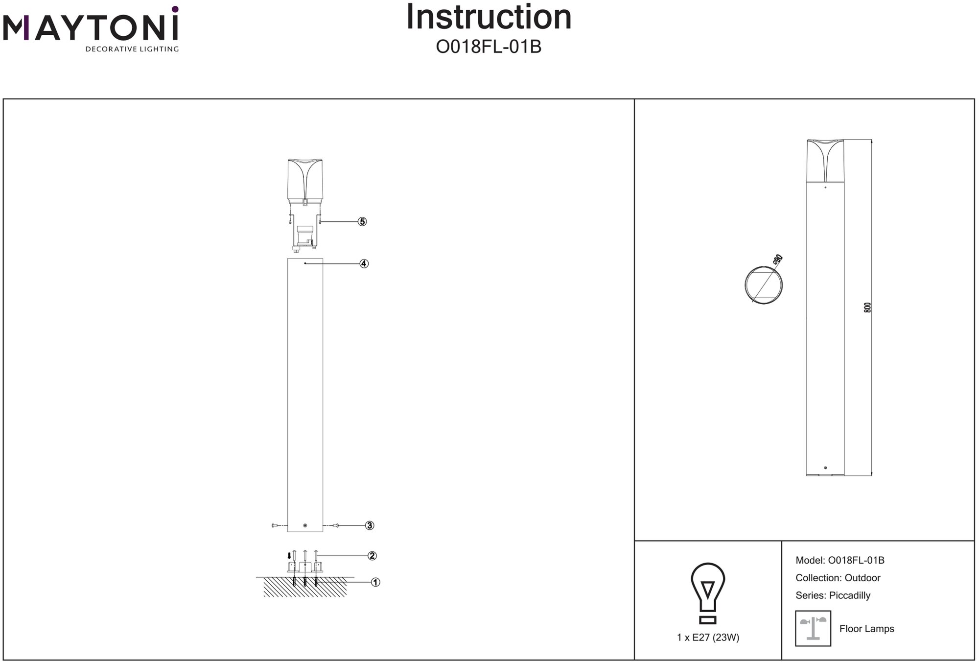 Ландшафтный светильник Piccadilly Maytoni Piccadilly O018FL-01B