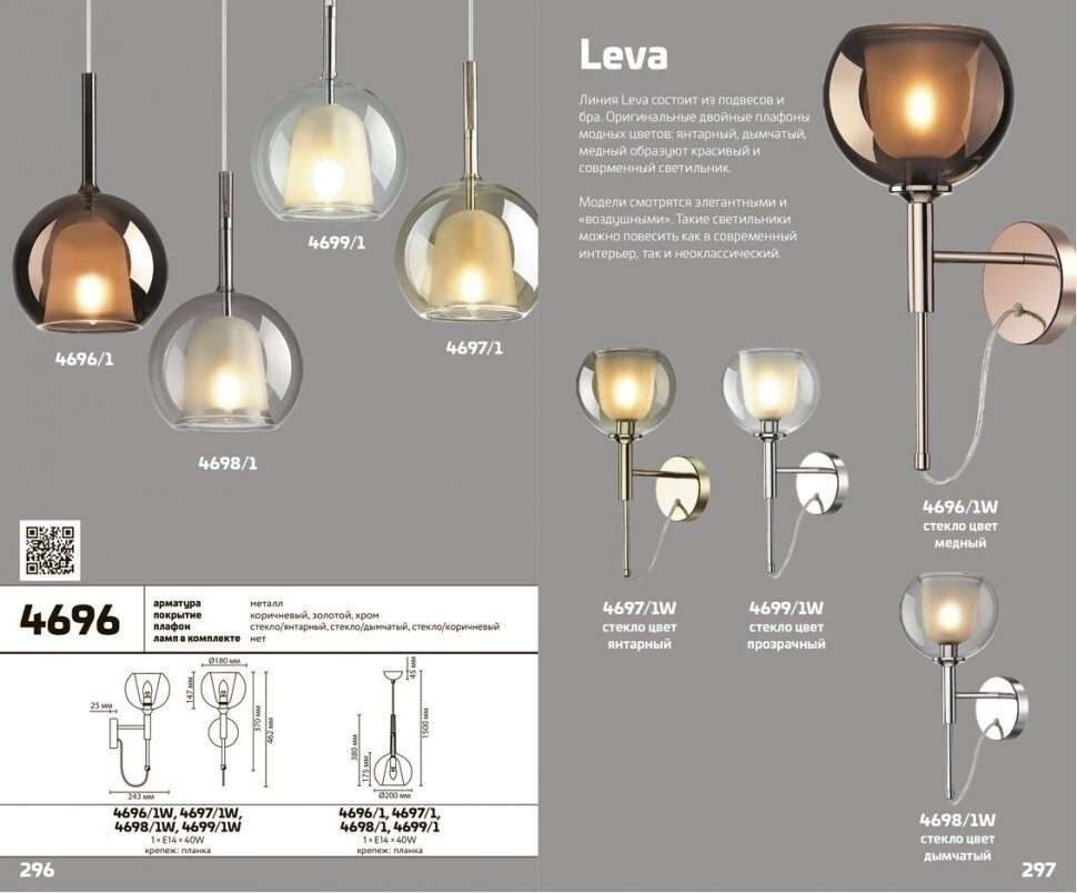| Описание серии для сайта | Линия Leva состоит из подвесов и бра. Оригинальные двойные плафоны модных цветов |
