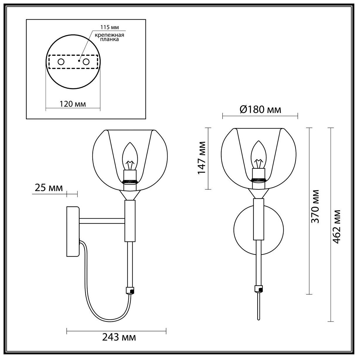 | Светильник Отступ от стены, мм | 243 |