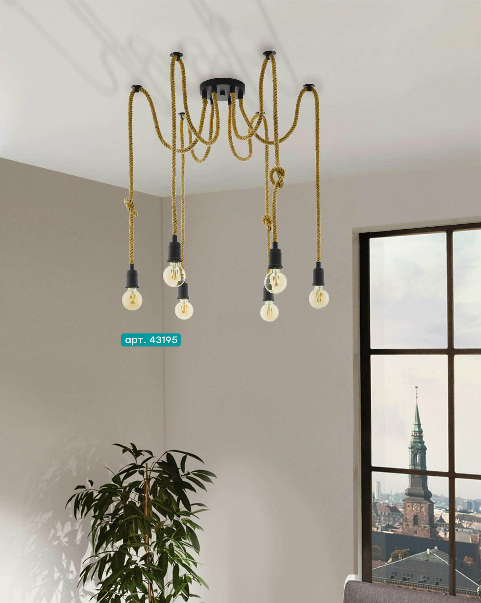Светильник ''Eglo'' - австрийское качество, стильный дизайн. Для изготовления светильников используются качественные материалы и современные технологии. Стильная серия ''Rampside'' с использованием канатных веревок и дутой форма плафонов. Стильное и смелое решение для интерьера.