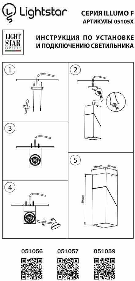 Спот Illumo 51056 - продукт известной компании Lightstar (Италия). Имеет максимальную мощность 50 Вт, освещает площадь до 4 кв. м. Отлично подойдет для таких мест, как гостиная, прихожая и коридор, кафе, кухня, кабинет, офис. Впишется в интерьеры следующих стилей: хай-тек.