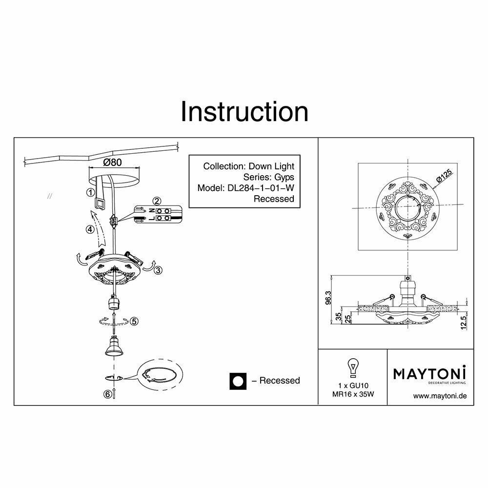Встраиваемый светильник Maytoni Gyps Gyps DL284-1-01-W