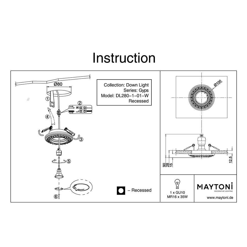 Встраиваемый светильник Gyps Classic Maytoni Gyps DL280-1-01-W