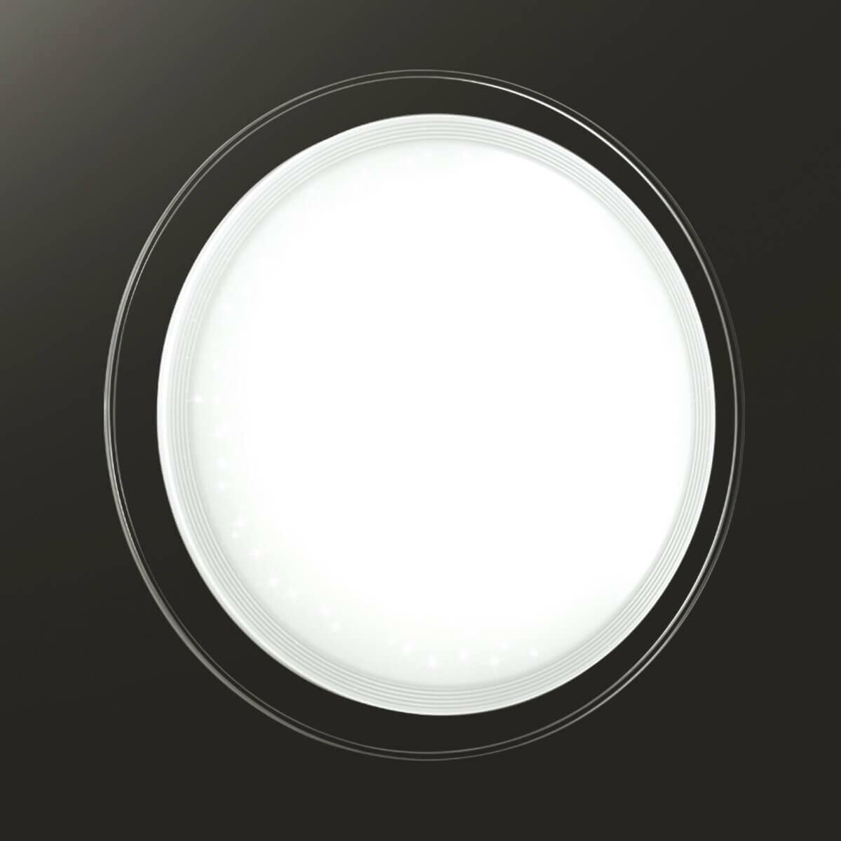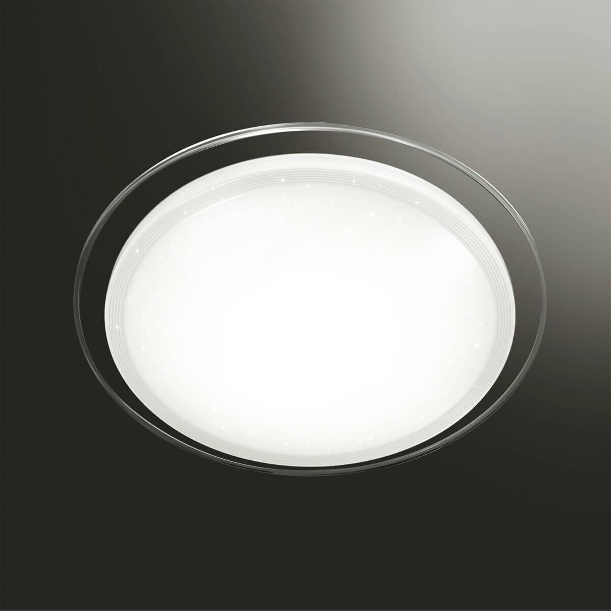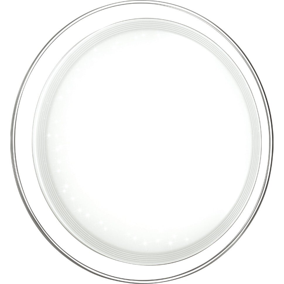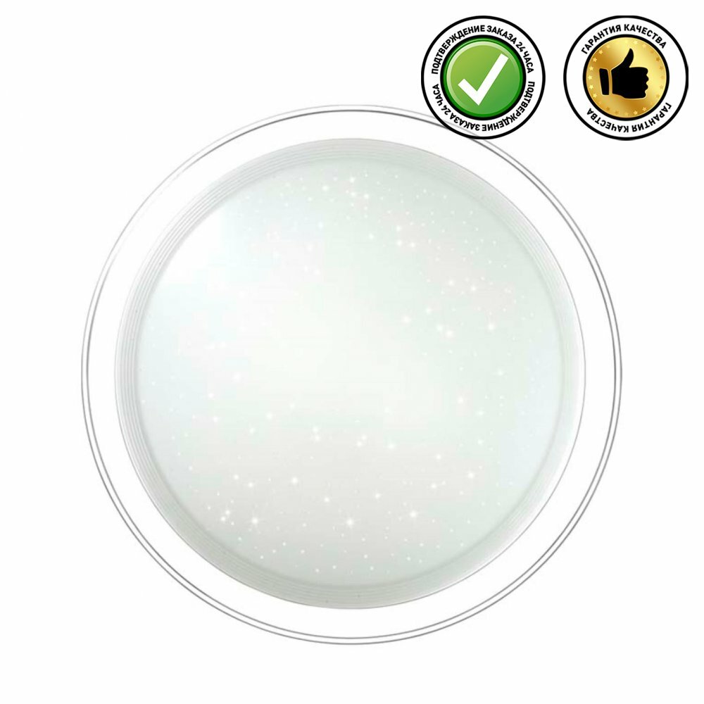Светильник 2011/D серии LIGA cостоит из металлического основания (базы) и пластикового рассевателя. Материал рассеивателя - высококачественный акрил белого цвета с глянцевой поверхностью, обеспечивающий светильнику равномерное рассеивание и хорошее светопропускание. Форма плафона: круглая, декорирована прозрачной рамкой и прозрачными точками, придающими включенному светильнику красивый эффект "звездного мерцания" и переливания. Степень защиты IP43 позволяет использовать светильник в определенных зонах влажных помещений. В комплект входит заменяемый LED модуль с линзами, мощностью 48Вт, которая соответствует лампе накаливания 350Вт. Источник света имеет комфортную цветовую температуру 4000К (белый свет).