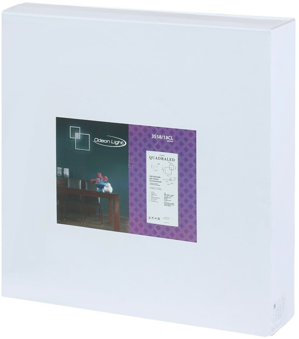 Cветодиодный настенно-потолочный светильник Quadraled 3558/18CL - продукт известной компании Odeon Light (Италия). Имеет максимальную мощность 18 Вт. Отлично подойдет для таких мест, как гостиная, прихожая и коридор, кафе, спальня, кабинет, офис. Впишется в интерьеры следующих стилей: хай-тек.