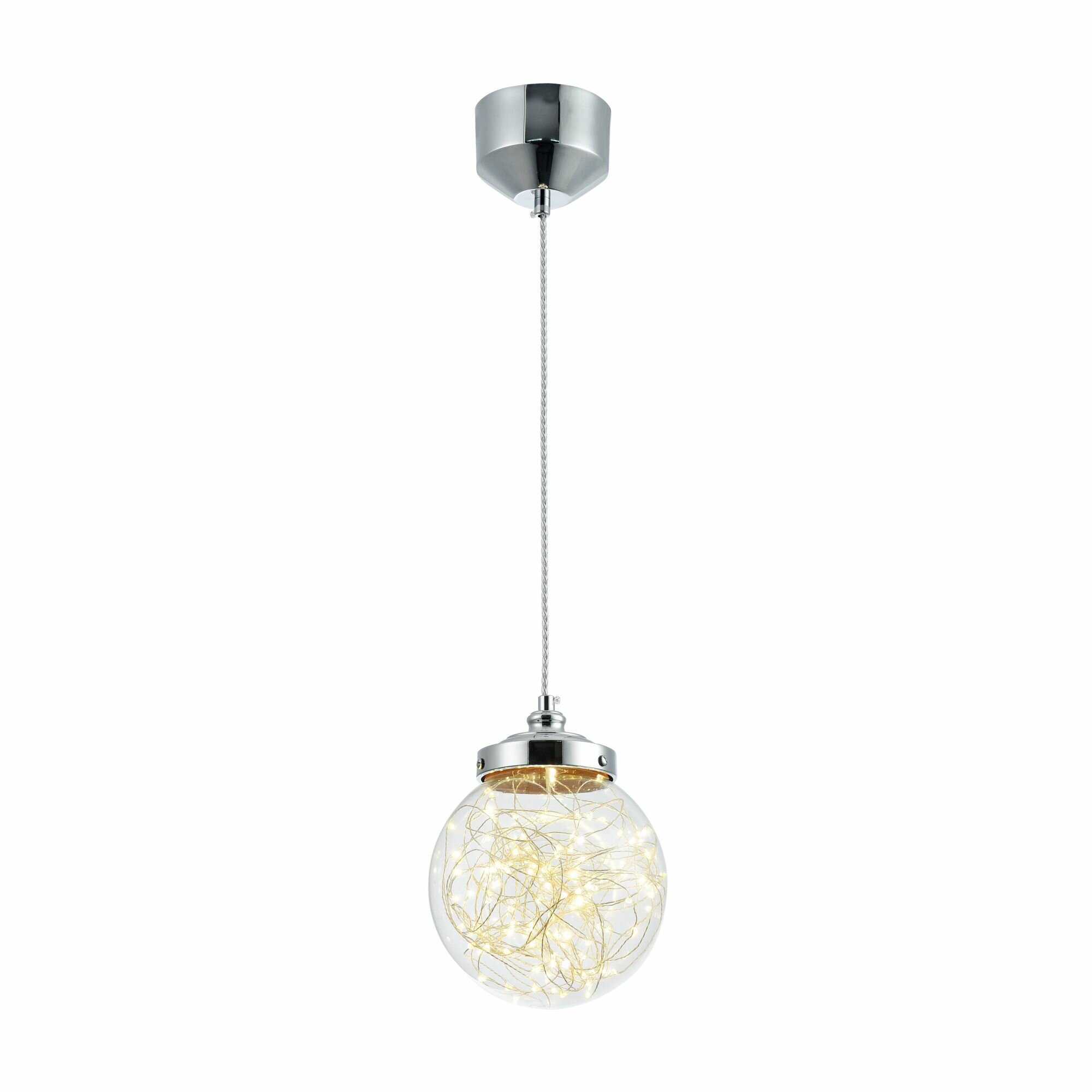 Светодиодный подвесной светильник шар Isabel FR6157-PL-9W-TR - продукт известной компании Freya (Германия). Имеет максимальную мощность 9 Вт, освещает площадь до 2 кв. м. Отлично подойдет для таких мест, как гостиная, кафе, офис, над кухонным островом. Впишется в интерьеры следующих стилей: современный.