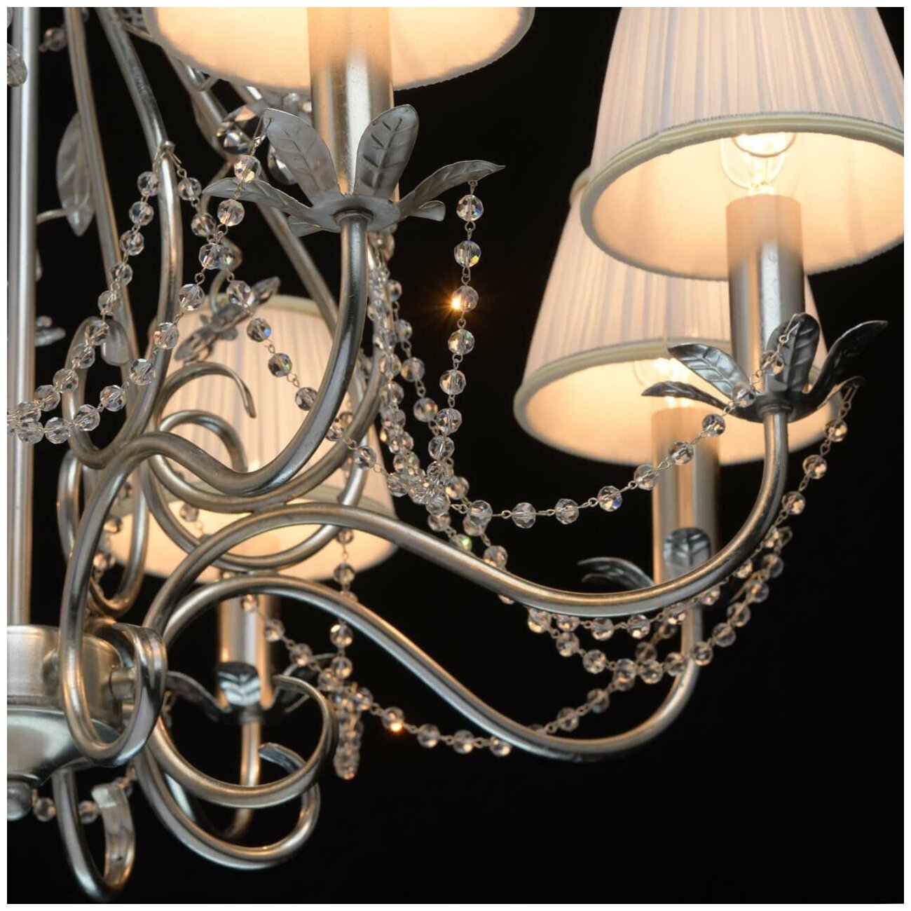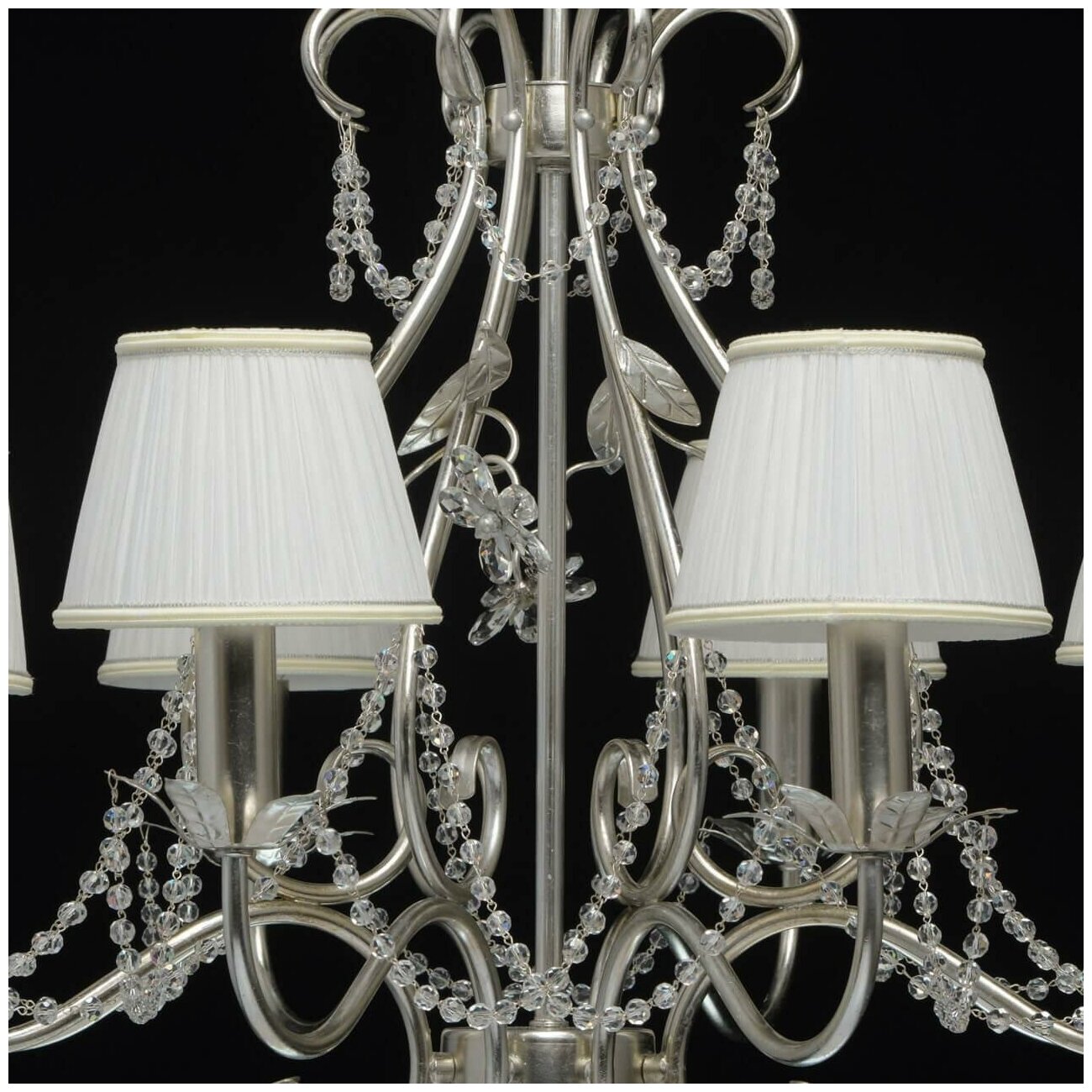 | Материал плафона | Текстильные абажуры сливочного цвета.Декор - хрусталь. |