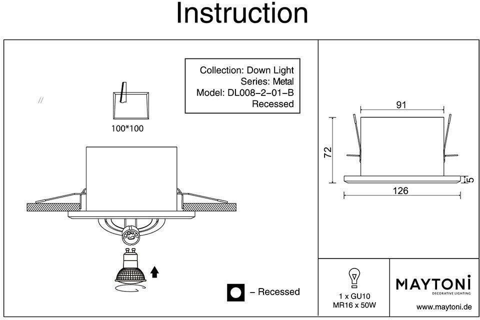Встраиваемый светильник Metal Modern Maytoni Metal DL008-2-01-B