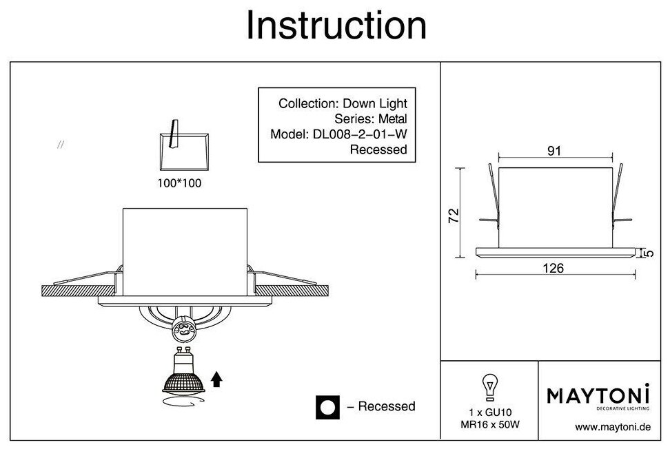 Встраиваемый светильник Metal Modern Maytoni Metal DL008-2-01-W