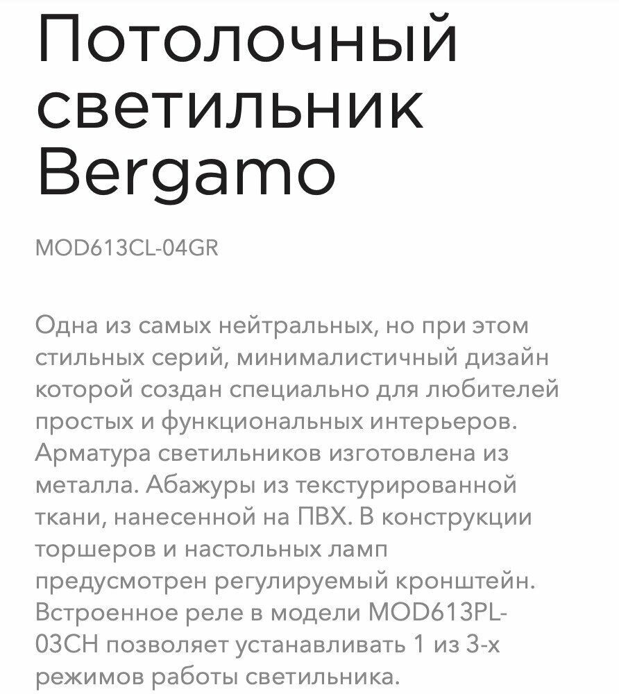 | Вид товара | Потолочные светильники |