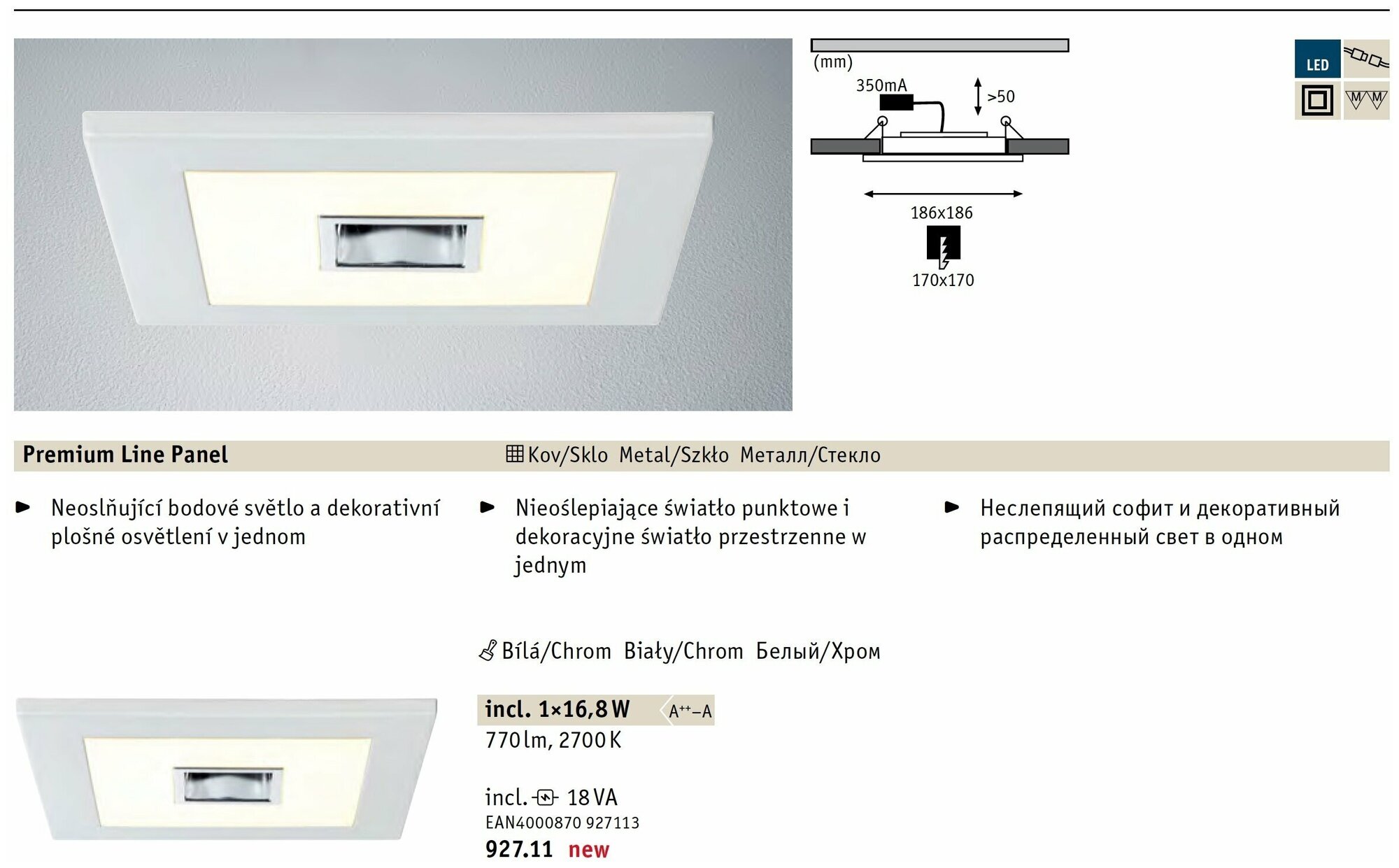 Встраиваемый светодиодный светильник Paulmann Premium Line Panel / (92711)