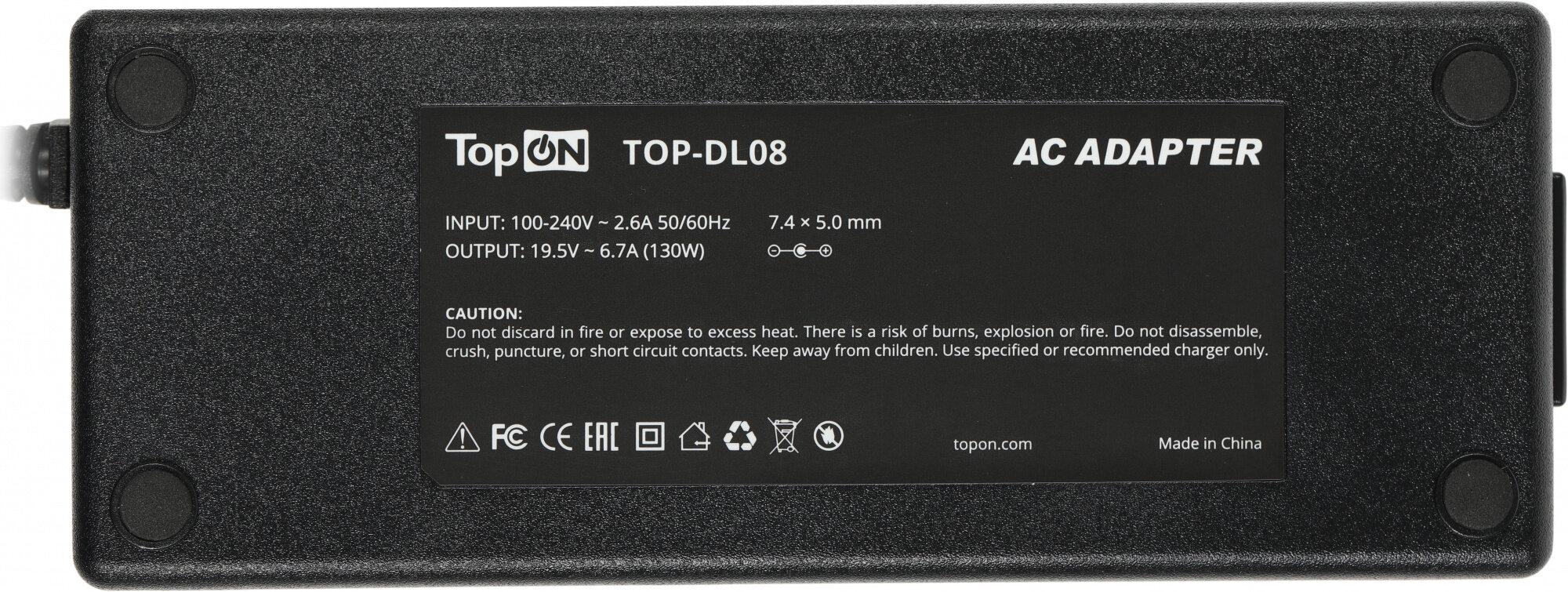 Зарядное устройство TopON TOP-DL08 19.5V -> 6.7A для DELL Latitude Inspiron XPS PrecisionVostro PA-13 (7.4x5.0mm с иглой) 130W