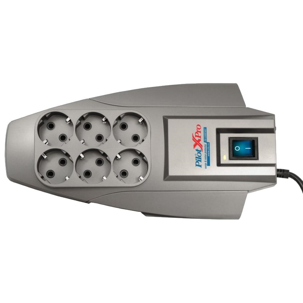 Надежный сетевой фильтр Pilot-X-Pro серебристого цвета с шестью розетками евростандарта с заземлением и 5-метровым кабелем имеет функцию защиты подключаемых устройств от короткого замыкания и вставку плавкую для защиты от короткого замыкания. Кроме того, данная модель оснащена биметаллический предохранителем для защиты от перегрузок и термопрерывателем для защиты от перегрузки по току. Максимальная энергия входного импульсного воздействия - 650 Дж.
