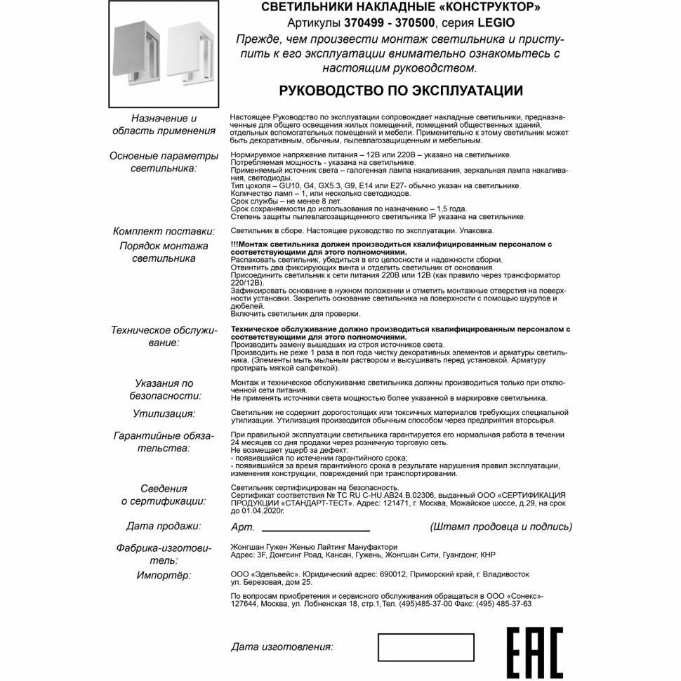- Настенные светильники Novotech Legio 370499/ 370500/ 370501/ 370502/ 370503/ 370504/ 370505/ 370506