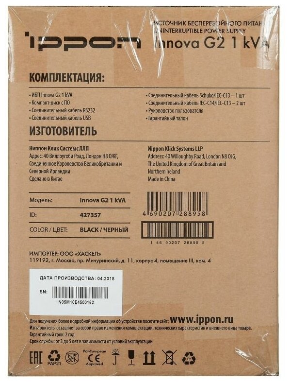 | Дополнительно | Информационный LCD-дисплей, Защита от перегрузки. Максимальная выходная мощность 1000ВА. |