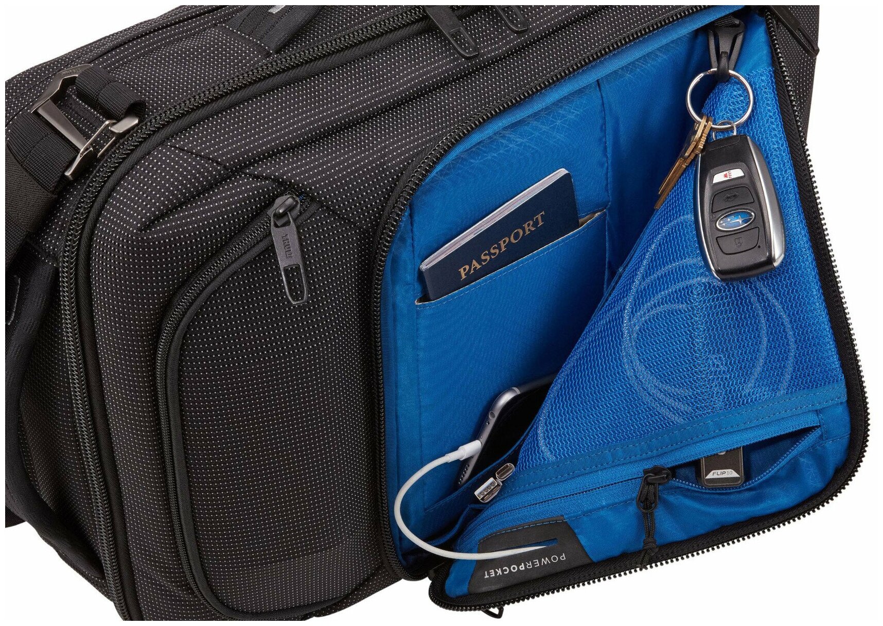 Универсальный рюкзак для ноутбука Thule Crossover 2 при желании можно с легкостью трансформировать в портфель.Универсальный профессиональный рюкзак для ноутбукаПродуманный ударостойкий карман надежно защищает хрупкие предметы, а карман PowerPocket позволяет аккуратно сложить зарядные шнуры и упрощает зарядку электронных устройств на ходу. Карман, блокирующий радиосигналы, защитит вашу личную информацию от кражи, а два отделения с плотной подкладкой идеально подойдут для ноутбука 14” или планшета 10,1". Рюкзак для ноутбука Thule Crossover идеально подходит для повседневной жизни и легко трансформируется в обычный рюкзак для переноски тяжелого груза. Стильный современный рюкзак для ноутбука Thule Crossover 2 изготовлен из легких водонепроницаемых материалов, надежно защищающих ваши вещи.