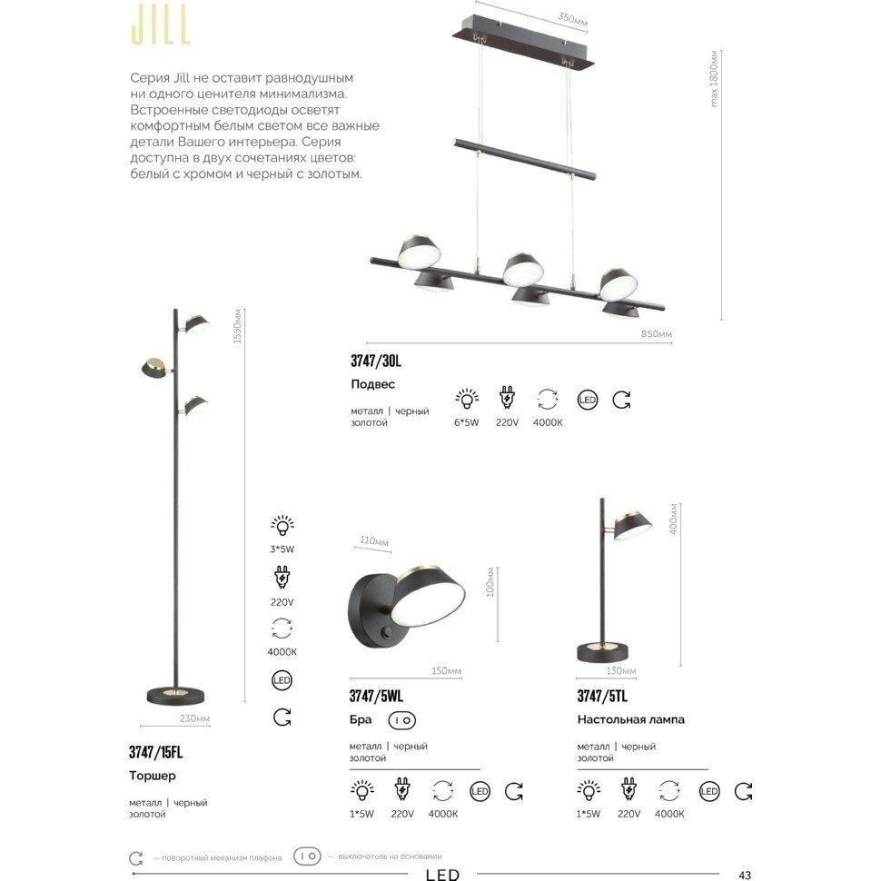 | Цвет плафона / абажура | черный, золото, белый матовый |