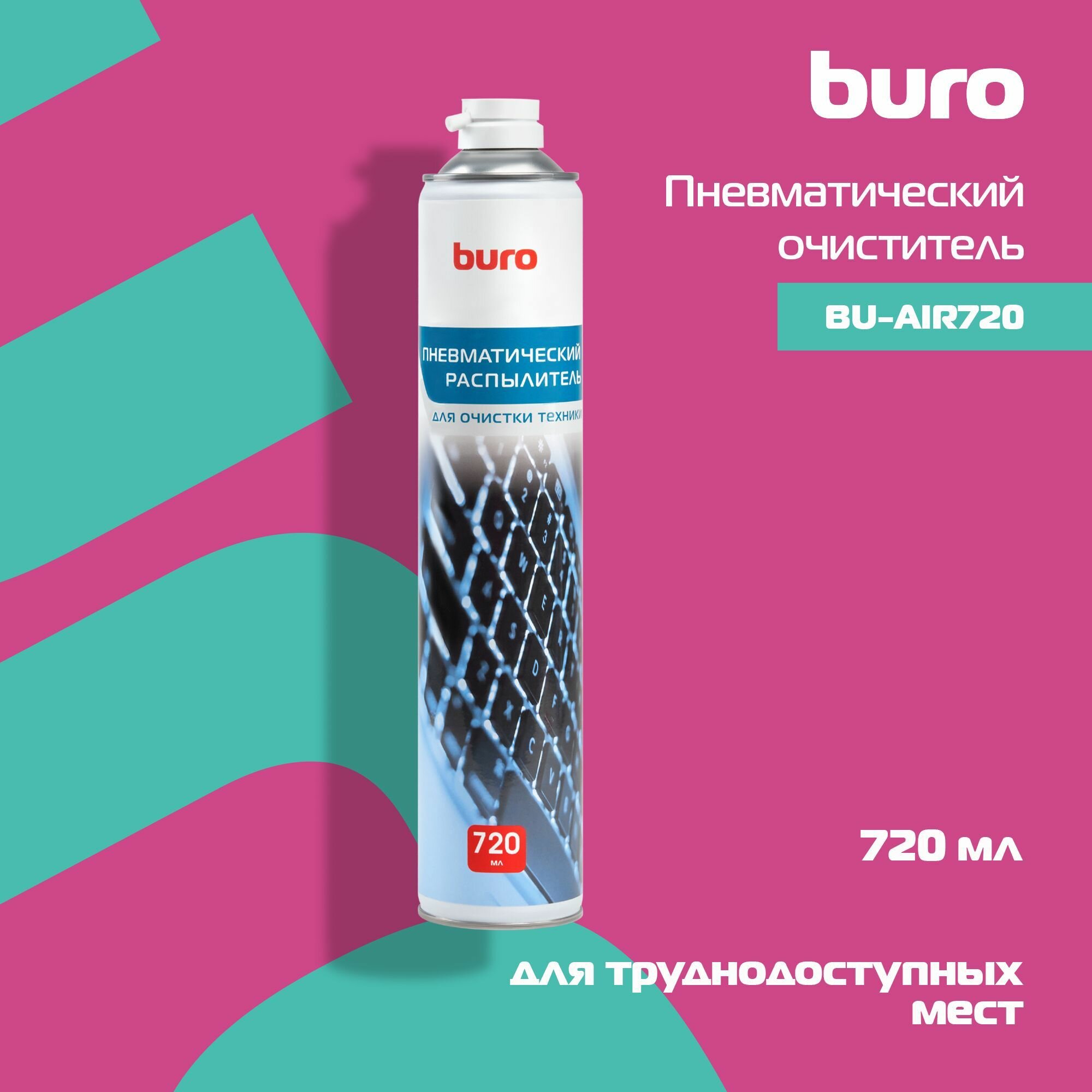 Компания Buro выпускает сжатый воздух в баллончиках для очистки труднодоступных мест, разъемов и узких щелей, для этого имеется тонкая трубочка. Воздух находится во флаконе под сильным давлением и, при нажатии кнопки, выдает мощную струю, которая сдувает пыль и загрязнения. Объем флакона Buro BU-Air для очистки техники 300 мл, это отличное средство для очистки корпуса ПК.