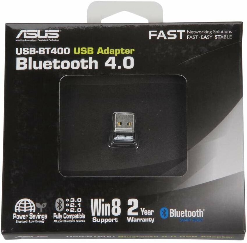 Bluetooth-адаптер ASUS USB-BT400 поддерживает стандарт Bluetooth 4.0, обеспечивая беспроводное подключение самых разных устройств - компьютера, принтера, смартфона, наушников, колонок, клавиатуры и многих других. Кроме того, ультра-малый USB-BT400 оснащен технологией Bluetooth Low Energy (BLE), которая позволяет вам наслаждаться энергосберегающим подключением.