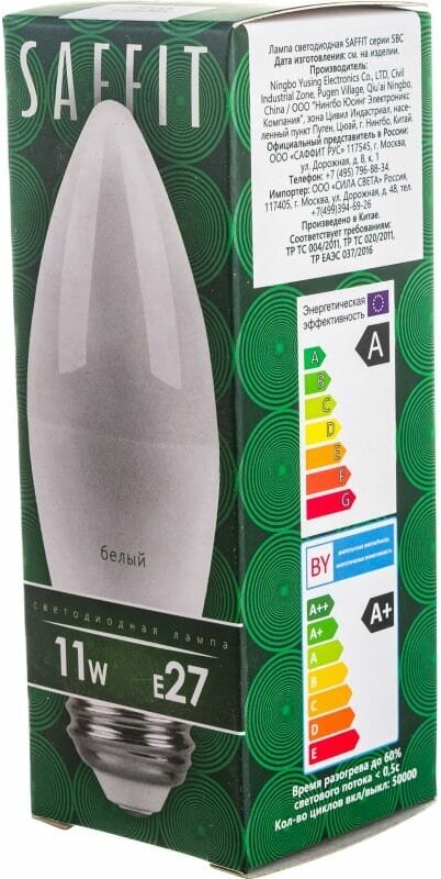 На сегодняшний день товар «Лампа светодиодная E27 свеча/C37 11Вт 4000K / белый 905лм SAFFIT (55135)» можно купить с кешбеком в 2 магазинах: E2e4online, Яндекс.Маркет