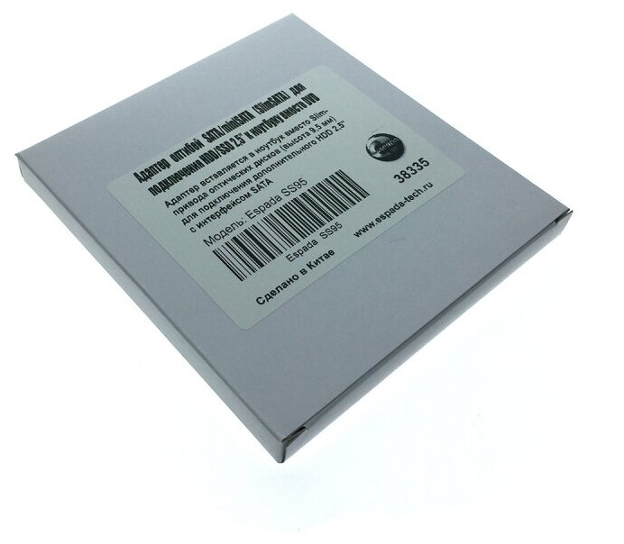 | Назначение | Адаптер вставляется в ноутбук вместо Slim-привода оптических дисков (высота 9,5 мм) для подключения дополнительного HDD 2,5" с интерфейсом SATA. |