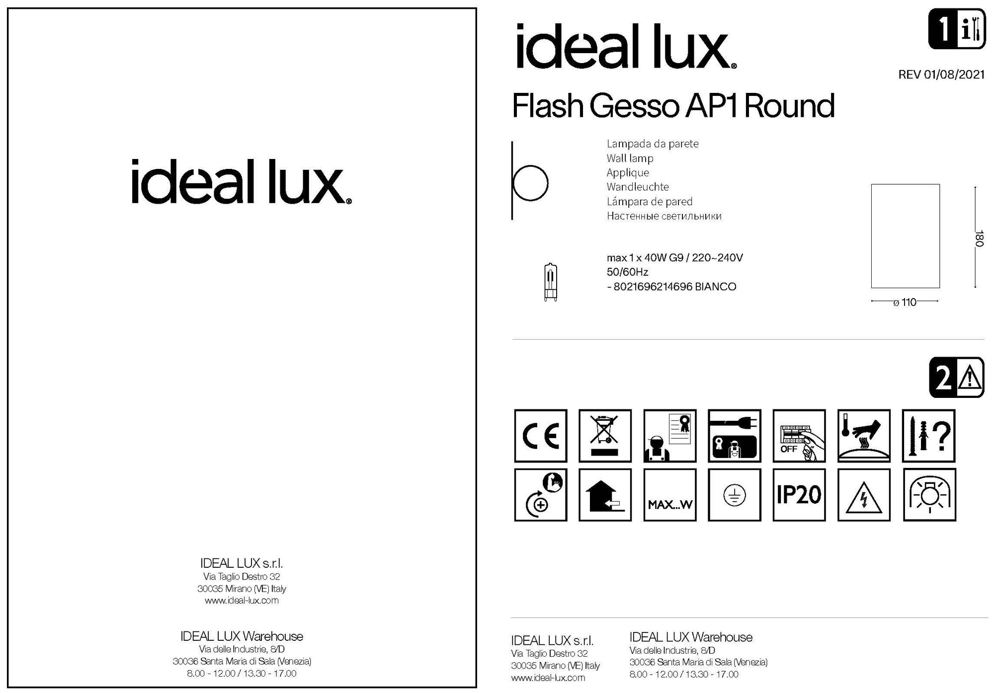 Декоративная подсветка Ideal Lux FLASH GESSO AP1 ROUND