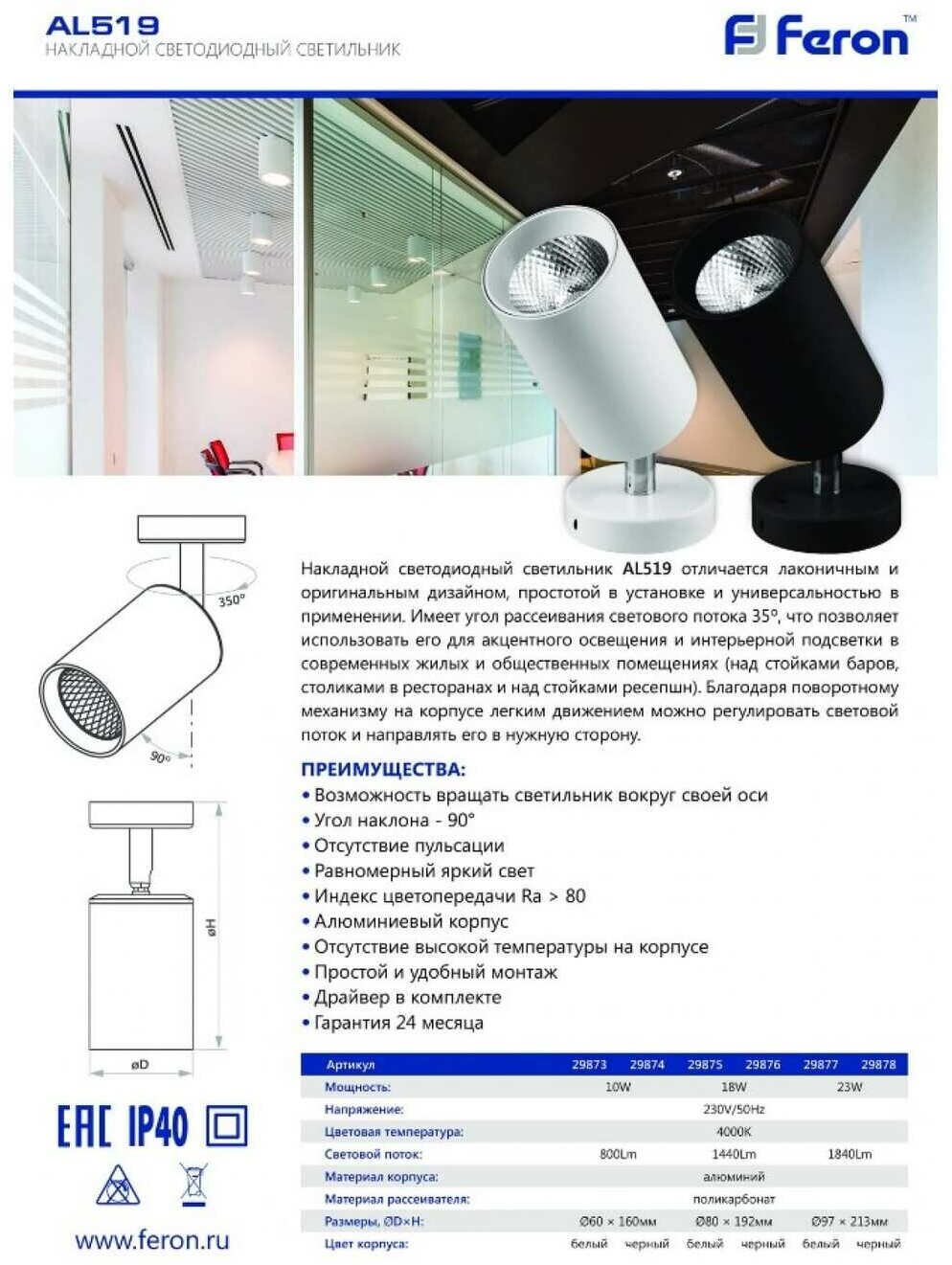 Сервис сравнения цен СкидкаГИД предлагает сравнить цены на товар «Светодиодный светильник Feron AL519 накладной 18W 4000K белый наклонный (29875)»