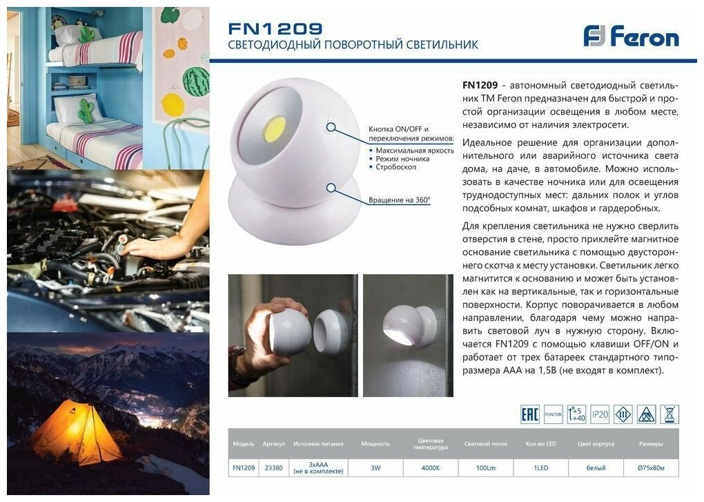Сервис сравнения цен СкидкаГИД предлагает сравнить цены на товар «Светодиодный поворотный светильник Feron FN1209 3W белый артикул 23380»