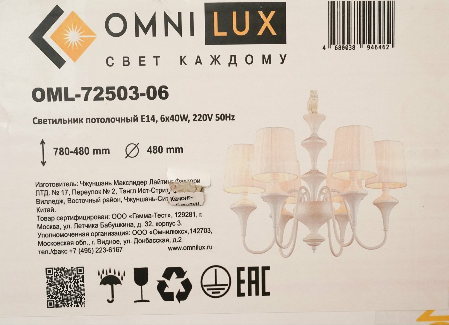 Подвесная люстра OML-72503-06 - продукт известной компании Omnilux (Италия). Имеет максимальную мощность 240 Вт, освещает площадь до 12 кв. м. Отлично подойдет для таких мест, как спальня. Впишется в интерьеры следующих стилей: прованс.